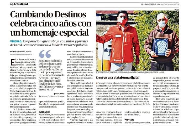 La Corporación Cambiando Destinos es una organización sin fines de lucro constituida en marzo de 2017 en Chile, dedicada a apoyar a niños, niñas y jóvenes que han transitado por residencias de protección del Estado, especialmente aquellos egresados del sistema residencial conocido como ex SENAME.